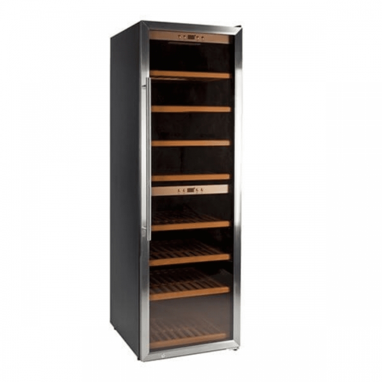 Největší domácí vinotéka značky Humibox a zároveň její vlajková loď. Kapacita této lednice na víno je 180 lahví a to vše při spotřebě 184 kW/rok! Tato luxusní kompresorová vinotéka se stane ozdobou vašeho domu, kanceláře či restaurace. Samozřejmostí jsou dvě zóny, obě samostatně regulovatelné v rozmezí 3 ° C až 22 ° C a dřevěné výsuvné police.