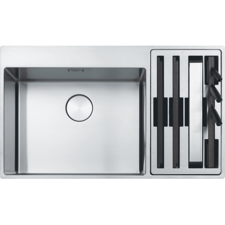 Vysoce kvalitní nerezová ocel zajišťuje dlouhou životnost a snadnou údržbu Velká hlavní vana a prostorná menší vanička umožňují efektivní mytí i přípravu surovin Bohaté příslušenství v ceně – včetně misek, krájecích desek, nožů, odkapávače a víka Excentrické ovládání výpusti Easy Click pro maximální pohodlí