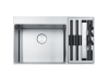Nerezový dřez Franke BWX 220/620-54-27 Miska Dřevěná přípravná deska Plastová přípravná deska 3 nože včetně dřevěného držáku Odkapávač na nádobí Víko Easy Click sítkový ventil 3 1/2" s přepadem a nerezovou krytkou ventilu Sítkový ventil 3 1/2" s přepadem Sifon pro úsporu místa 6/4" s odbočkou na myčku nádobí