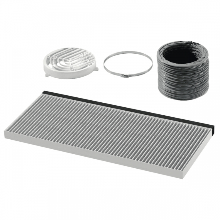 určeno pro provoz s recirkulací nyní s vylepšenou technologií filtrování určené pro ploché odsavače par životnost pachového filtru CleanAir Standard je 6-12 měsíců funkce antiFish: speciální impregnace, která odstraní nepříjemné rybí aroma při vaření obsahuje: pachový filtr s aktivním uhlím CleanAir Standard, difuzor, flexibilní hadici o o 150 mm a délce 800 mm, hadicovou svorku a montážní materiál