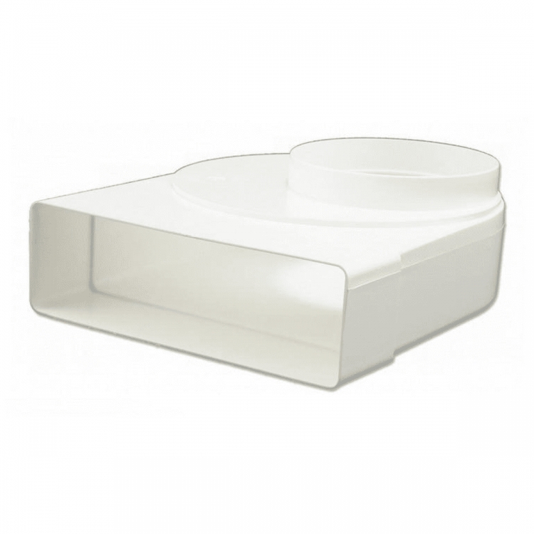 Přechodové koleno s osovou regulací se využívá k napojení potrubí - přechod z kulatého potrubí v systému 150 na ploché potrubí v systému 150. Redukce má otočné kulaté hrdlo o 360°, které lze nastavit přesně dle vašich potřeb. Koleno je určeno do max. teploty 45°C a je vyrobeno z hmoty ABS v bílé barvě.