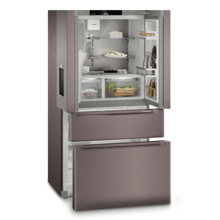 Chladnička s mrazničkou ve francouzských dveřích se 2 mrazicími zásuvkami a dávkovačem vody a kostek ledu