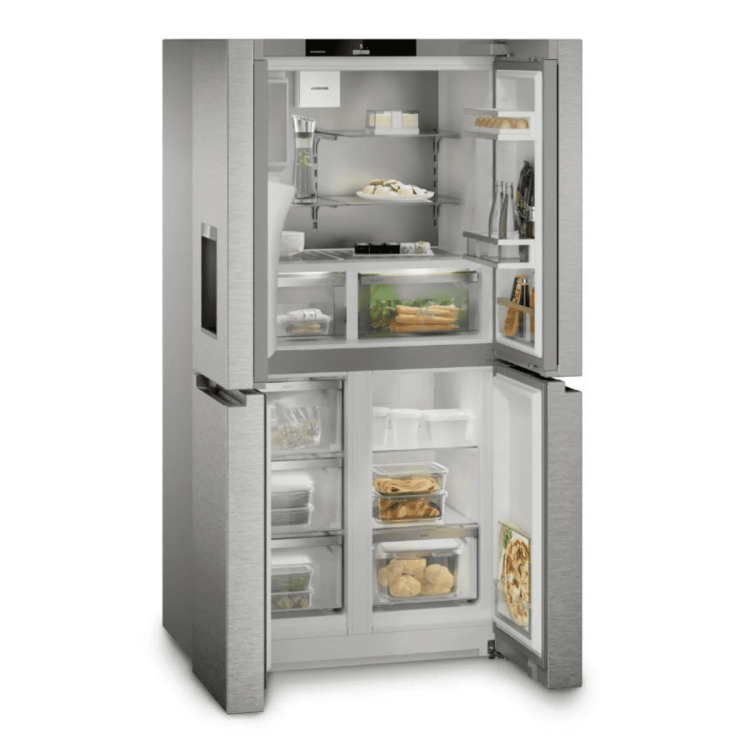 Čtyřdveřová francouzská chladnička s mrazničkou s dávkovačem vody a kostek ledu