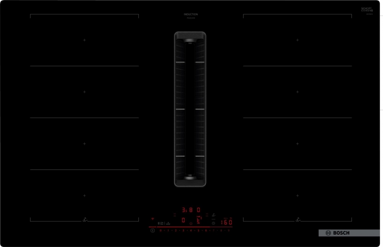 Indukční varná deska s plně integrovaným vysoce výkonným systémem odvětrání par.