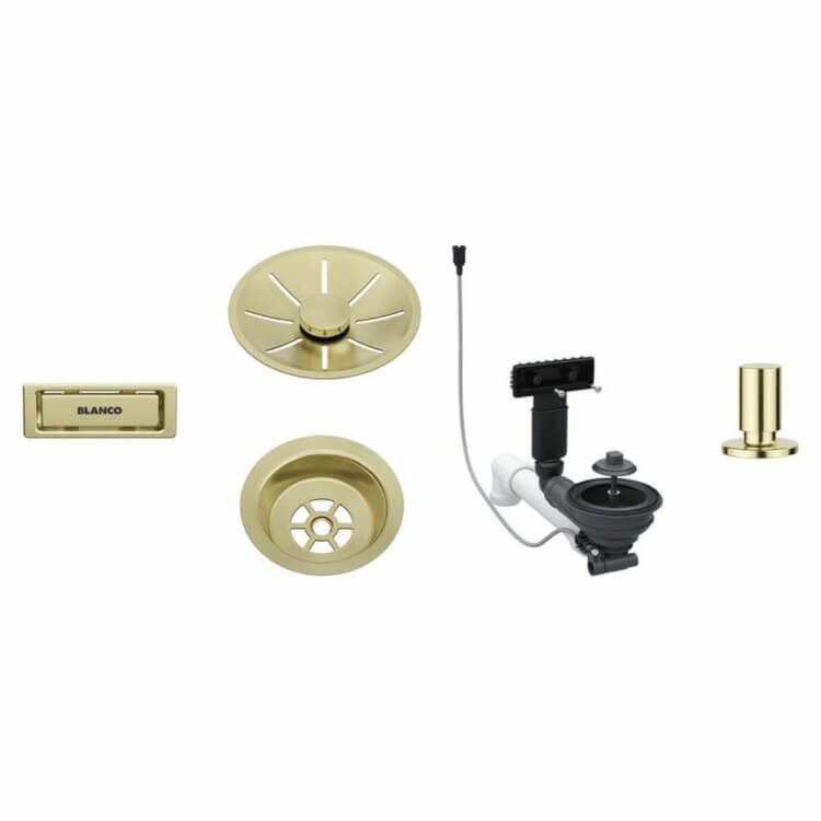 Blanco Odtoková sada 3 1" InFino pro jednu vaničku, přepad C-overflow, + táhlo, satin gold - 207427