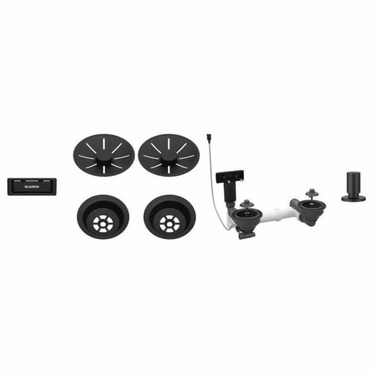 Blanco Odtoková sada 2x3 1" InFino pro dvě vaničky, přepad C-overflow, + táhlo, černá matná - 207442