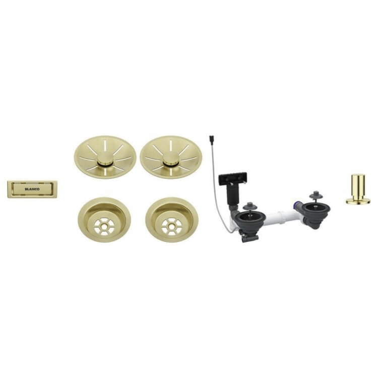 Blanco Odtoková sada 2x3 1" InFino pro dvě vaničky, přepad C-overflow, + táhlo, satin gold - 207443