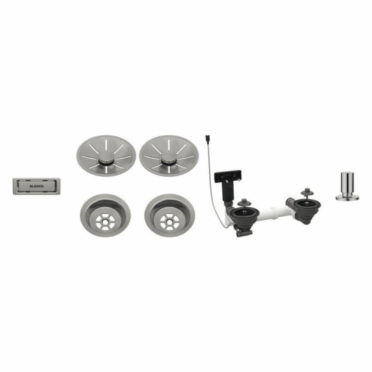 Blanco Odtoková sada 2x3 1" InFino pro dvě vaničky, přepad C-overflow, táhlo, satin dark platinum - 207445