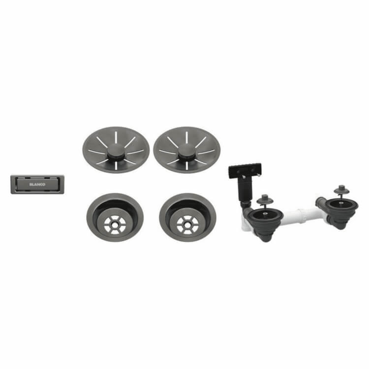 Blanco Odtoková sada 2x3 1" InFino pro dvě vaničky, přepad C-overflow, satin dark steel - 207440