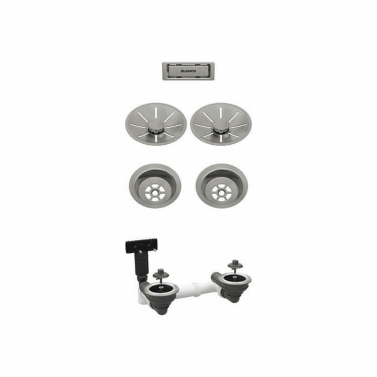 Blanco Odtoková sada 2x3 1" InFino pro dvě vaničky, přepad C-overflow, satin platinum - 207441