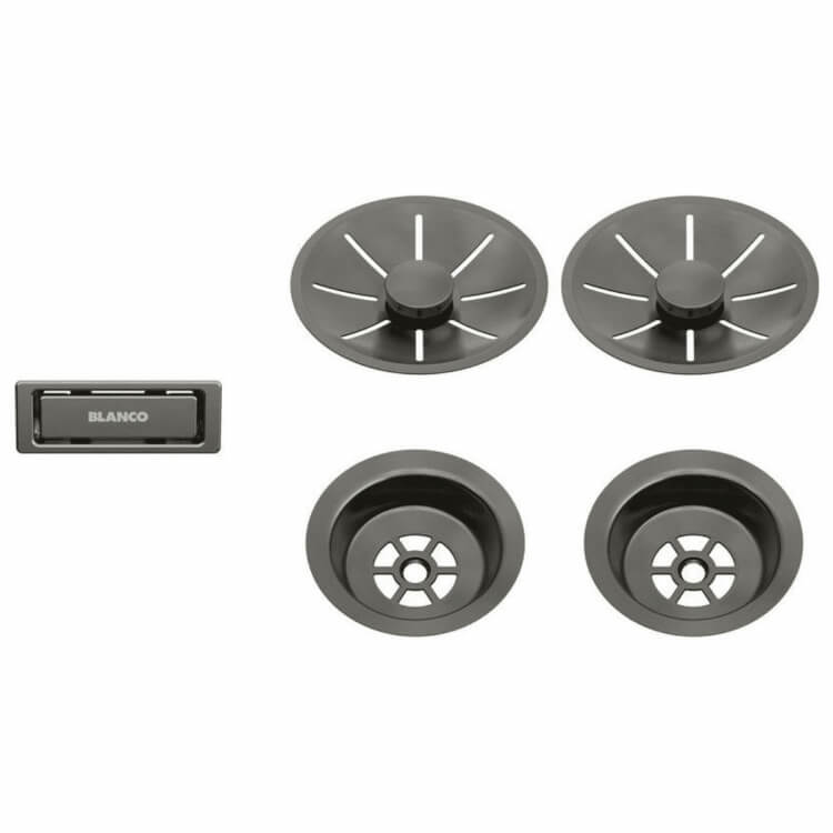 Blanco Odtoková sada InFino s přepadem C-overflow, satin dark steel pro dva dřezy - 206901