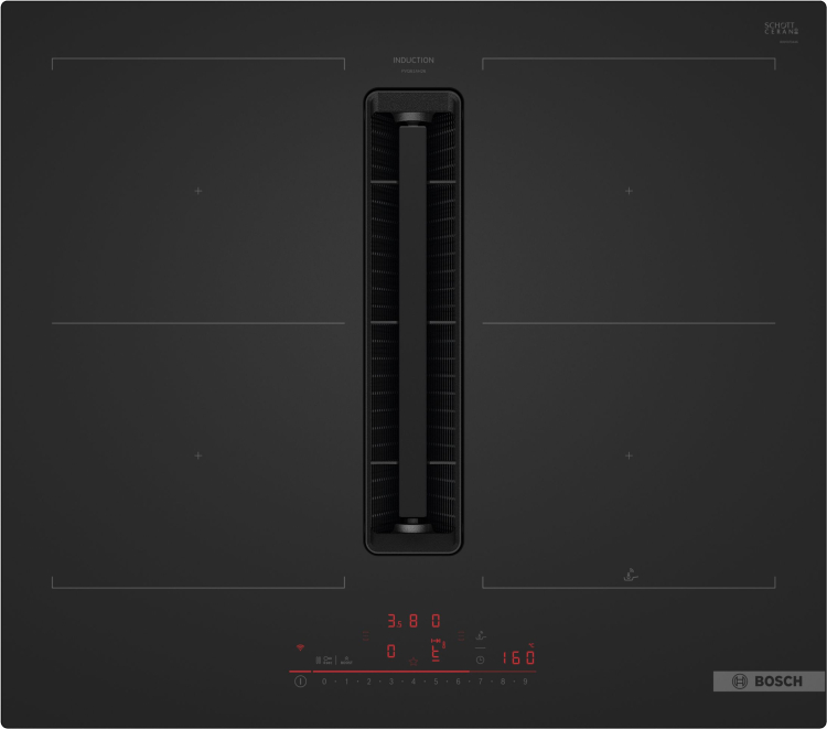 Indukční varná deska s plně integrovaným vysoce výkonným systémem odvětrání par.