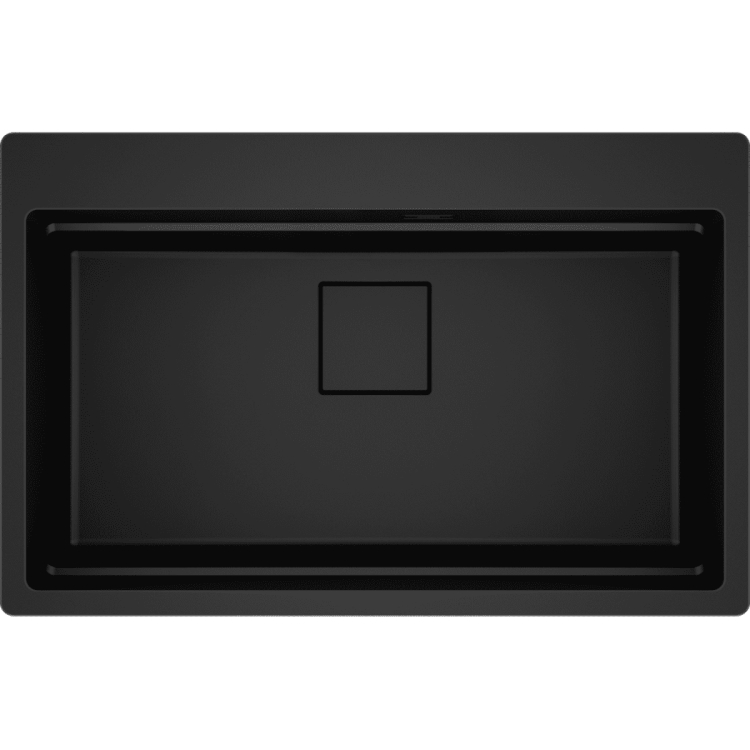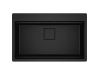 Fragranitový dřez Kubus Pro. Cena zahrnuje: Sítkový ventil 3 1/2“ s přepadem a nerezovou krytkou ventilu. Sifon pro úsporu místa 6/4 “ s odbočkou na myčku nádobí. 3 Místa pro vyvrtání otvoru. Možnost umístit dávkovač saponátu. V ceně dřezu doplňky: miska, přípravná deska a rolovací rošt. Skrytý přepad, sítkový ventil a krytka ventilu jsou v matném černém provedení.