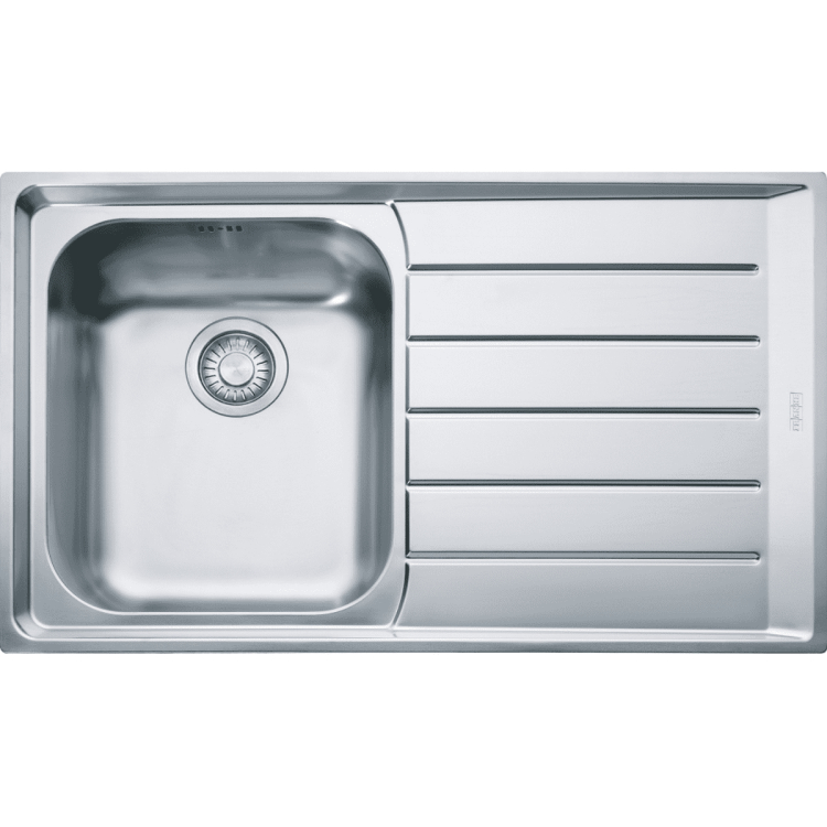 Nerezový dřez Neptun. Cena zahrnuje: Sítkový ventil 3 1/2" s přepadem. Sifon pro úsporu místa 6/4" s odbočkou na myčku nádobí. Otvor pro baterii Ř 35 mm.