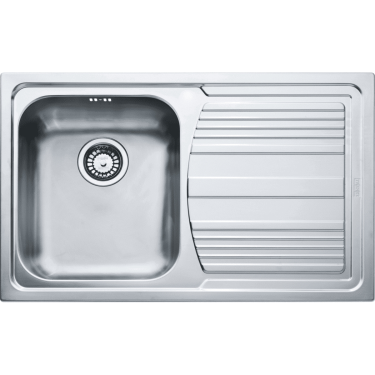 Nerezový dřez Logica. Cena zahrnuje: Sítkový ventil 3 1/2“ s přepadem. Sifon pro úsporu místa 6/4“ s odbočkou na myčku nádobí. Otvor pro baterii Ř 35 mm.