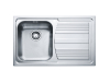 Nerezový dřez Logica. Cena zahrnuje: Sítkový ventil 3 1/2“ s přepadem. Sifon pro úsporu místa 6/4“ s odbočkou na myčku nádobí. Otvor pro baterii Ř 35 mm. Tkaná struktura.